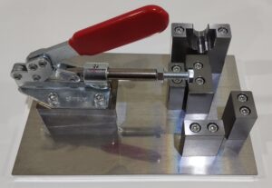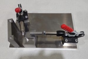 今回はトグルクランプを使用して、ハンドルを押し引きするだけで作業を簡易化しています。